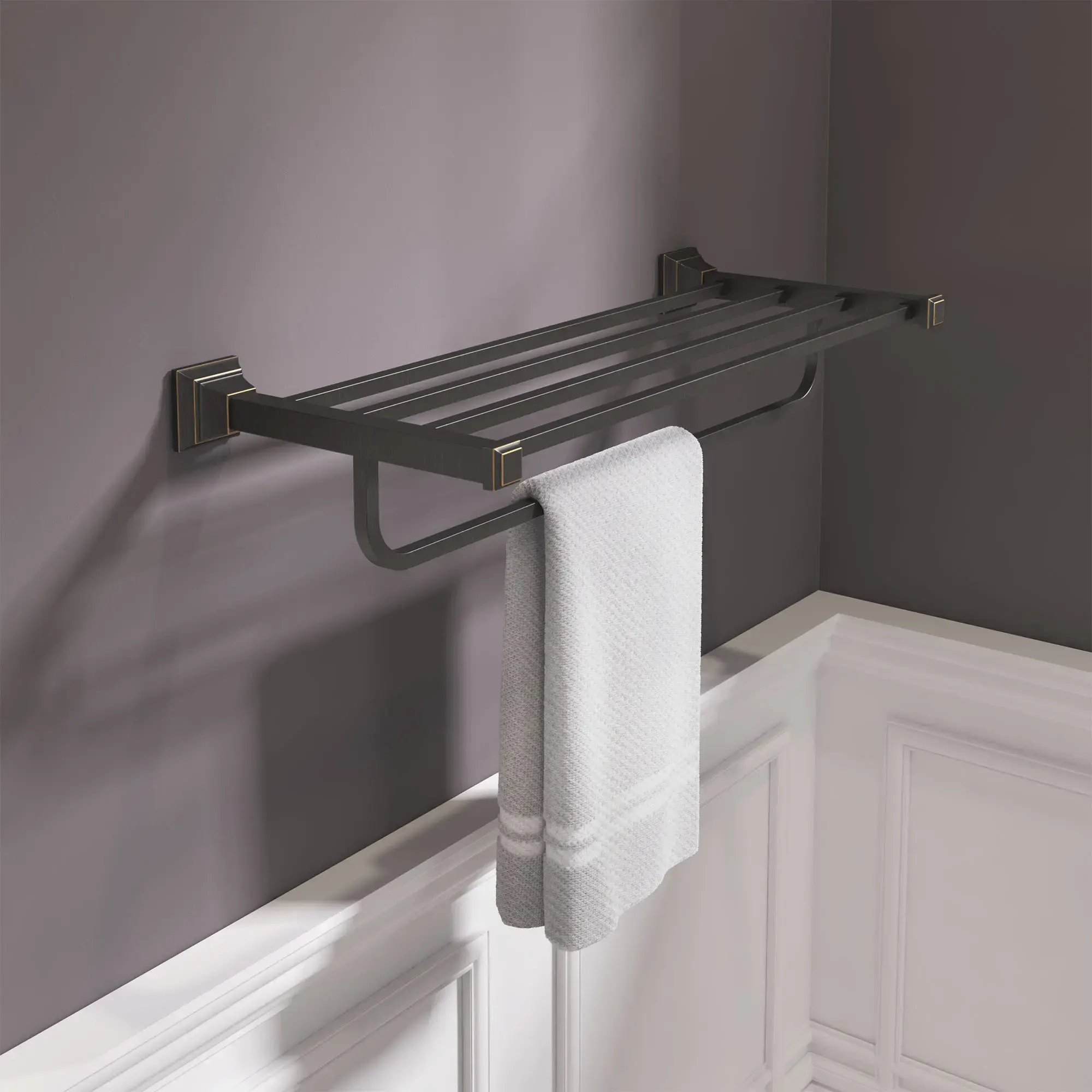 Storage with a sense of style, the TS Series 24 Inch Train Rack by American Standard complements the traditional bathroom beautifully. The perfect combination of form and function, it features a top shelf, a lower towel bar, and is available in 4 finishes.